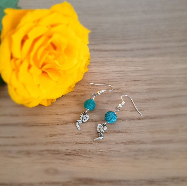 This earring is made of 8 mm green colored agate and a fairy hanger.